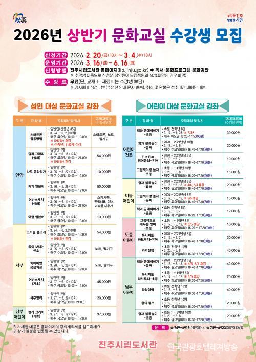 ¼ö° ½ÅûÀº 2¿ù 20ÀÏ ¿ÀÀü 10½ÃºÎÅÍ 3¿ù 4ÀÏ ¿ÀÈÄ 6½Ã±îÁö ÁøÁֽø³µµ¼°ü ´©¸®Áý¿¡¼ ¼±Âø¼øÀ¸·Î Á¢¼öÇÑ´Ù. ¼ö°·á´Â ¹«·áÀ̸ç, ±³Àçºñ(Àç·áºñ)´Â º»ÀÎ ºÎ´ãÀÌ´Ù.